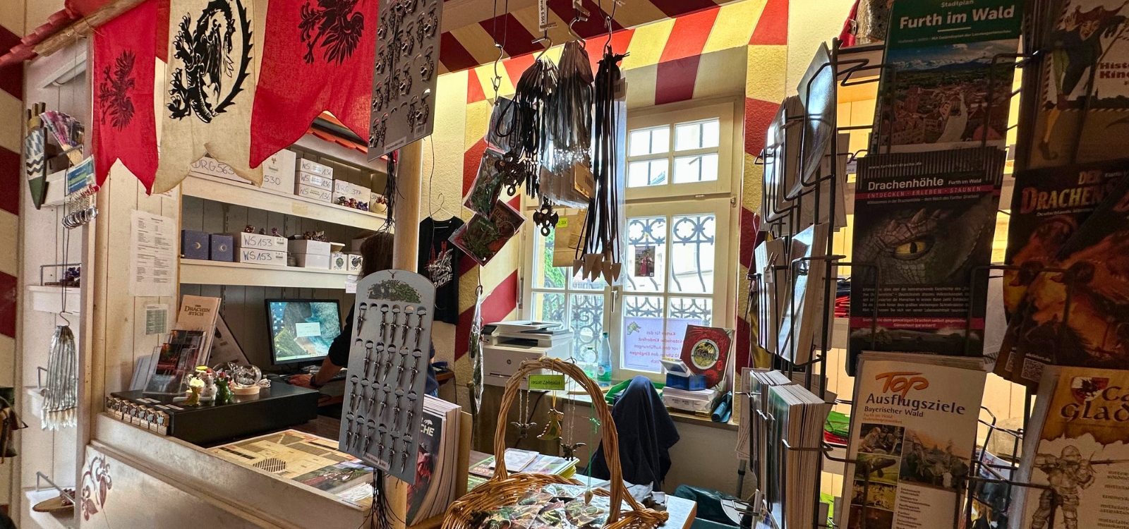 Im Drachenladen sind die Eintrittskarten für das Festspiel "Der Drachenstich" auch erhältlich.