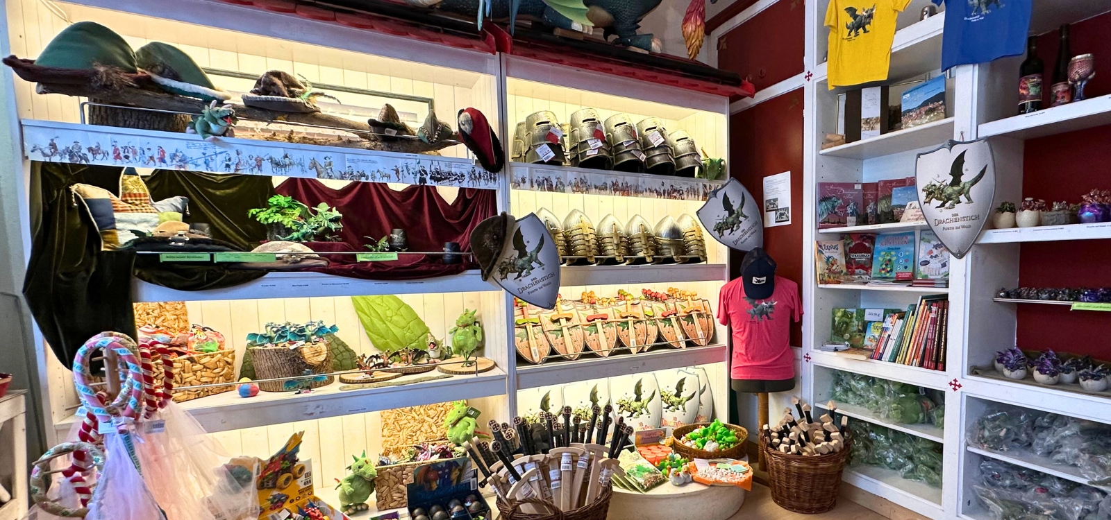Hier finden Sie neben vielen Mitbringsel und Souvenirs auch Schwerter und Helme für den kleinen Ritter und Schmuck für das Burgfräulein.